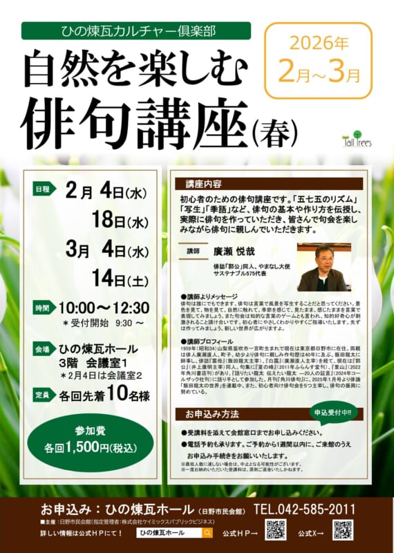 ●1月の休館日● ■ひの煉瓦ホール(日野市民会館)、七生公会堂、七生福祉センター 1/1(木)~1/5(月)、13日(火)、19日(月)、26日(月) ■とよだ市民ギャラリー 1/1(木)~1/5(月)、12日(月)、19日(月)、26日(月)