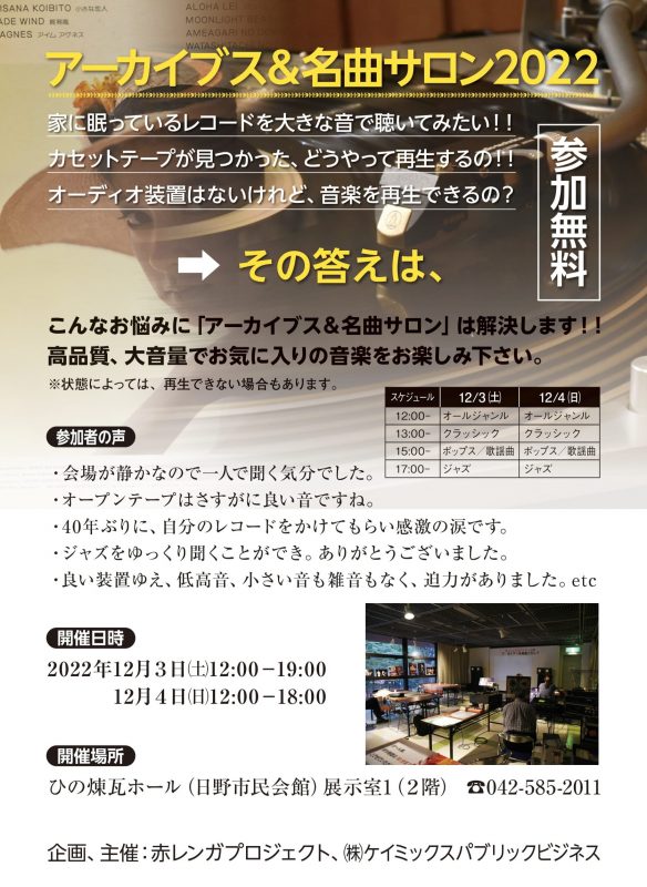 | 時間 | 開場 13:30 / 開演 14:00/ 終演 16:00 |