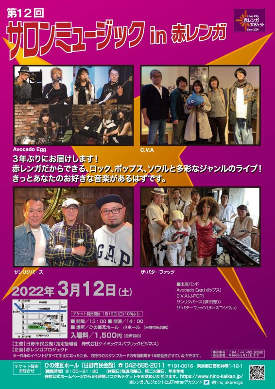 ※日野市民会館及び七生公会堂は初日は電話受付のみとなります。